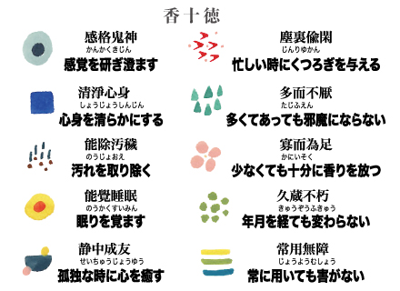 ラベルのイラストは「香十徳」をイメージして描きました。